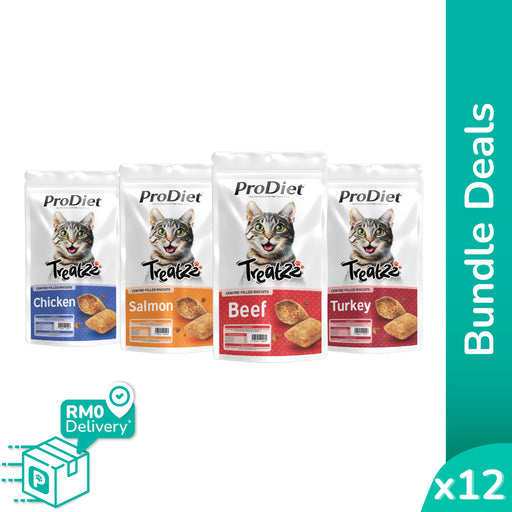 View full details[Buy 12 Free 12] ProDiet Treatzz Centre-Filled Biscuit (Chicken / Salmon / Beef / Turkey) 80g x 12 packs